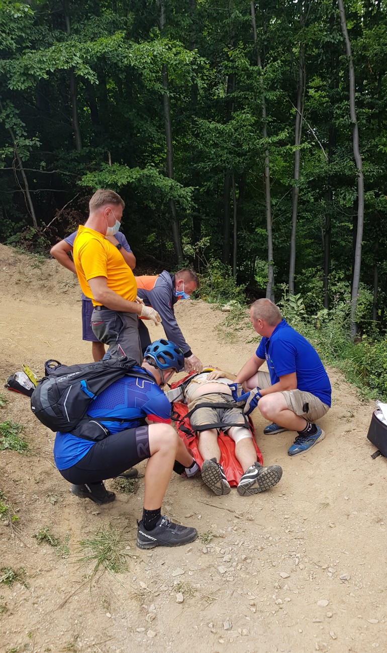 Pád cyklistu v bike parku v Mýte pod Ďumbierom